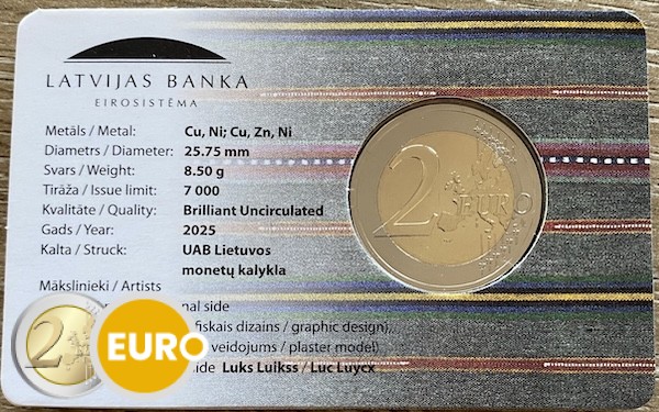 Cette pièce de 2 euros commémorative rend hommage aux armoiries de Sēlija, une région historique de Lettonie. Son blason, orné d’éléments symboliques, reflète l’histoire riche et l’identité de Sēlija dans la culture lettone.