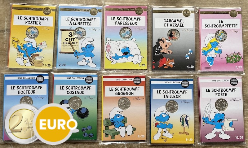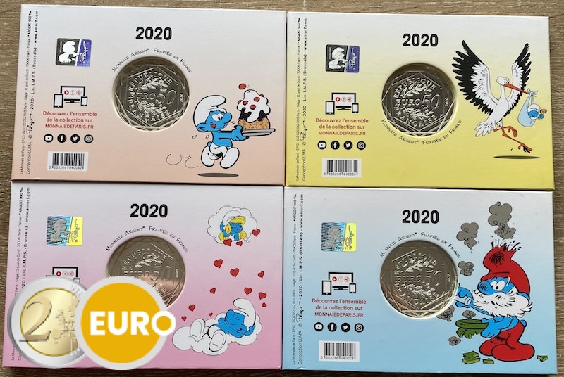 20 x 10 euros + 4 x 50 euros France 2020 – Schtroumpfs UNC argent en coffret – Vague 1 + 2
