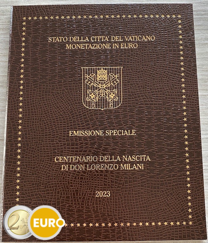 Avec les pièces de 1 cent à 2 euros + 5 euros 100 ans naissance Don Lorenzo Milani