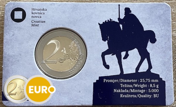 Cette pièce de 2 euros commémorative célèbre les 1100 ans du Royaume de Croatie et le couronnement du roi Tomislav en 925. Premier roi de Croatie, Tomislav a conduit le pays vers une ère d’unité et d’indépendance.