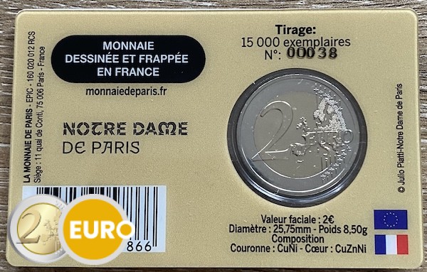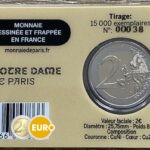 Cette pièce de 2 euros commémorative rend hommage à Notre-Dame de Paris à l’occasion de l’achèvement de sa restauration après l’incendie dévastateur de 2019. Chef-d’œuvre gothique et symbole de l’histoire et de la culture françaises, elle retrouve toute sa splendeur.