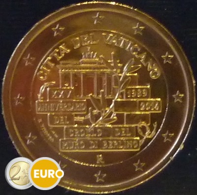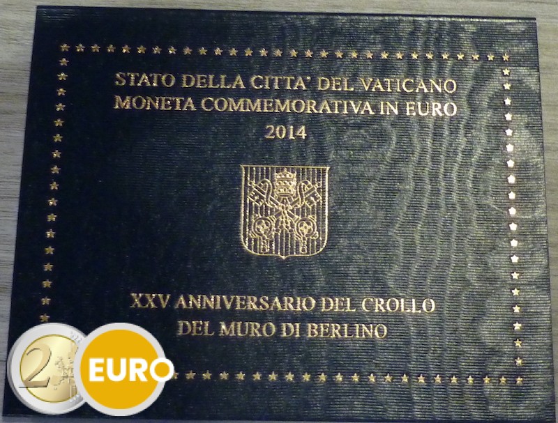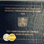 Au premier plan, le dessin représente quelques briques du mur de Berlin partiellement effondré, sur lesquelles figure l’inscription « XXV ANNIVERSARIO DEL CROLLO DEL MURO DI BERLINO 1989 2014 ». Au centre du dessin, dans un espace entre les briques et un morceau de fil barbelé, apparaît un rameau d’olivier et en arrière-plan figure la Porte de Brandebourg. La partie supérieure porte l’inscription « CITTÀ DEL VATICANO ».