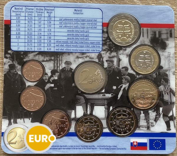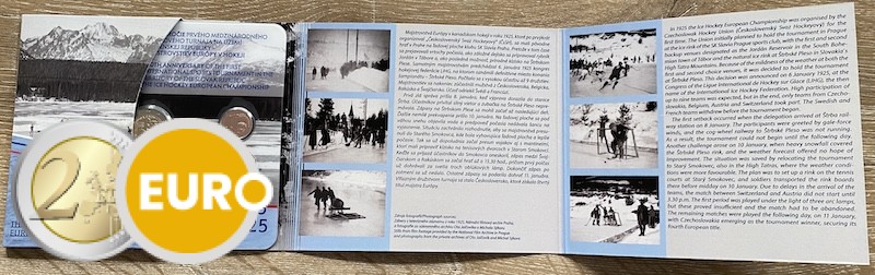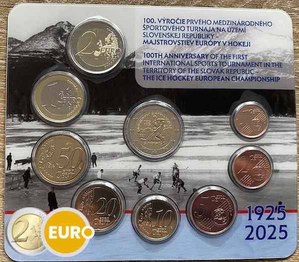 Avec les pièces de 1 cent à 2 euros + 2 euros commémorative 100 ans du premier tournoi sportif international en Slovaquie – Championnats d’Europe de hockey sur glace